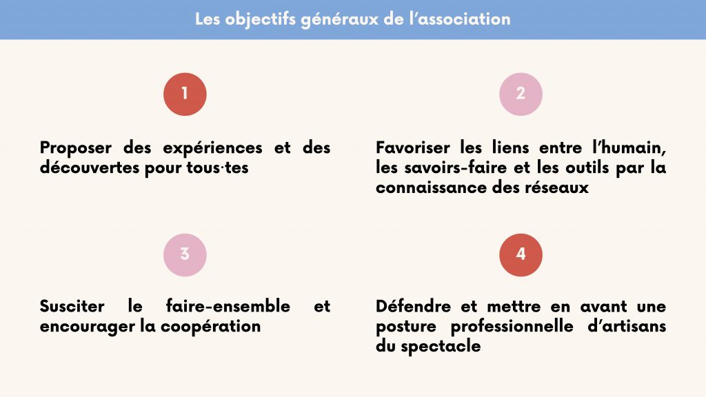 Le projet associatif est un document qui oriente les actions de l’association à l’aide d’objectifs à moyen et long terme. Ces objectifs représentent les valeurs que défend l’association, et les actions que nous menons visent à affirmer ces valeurs sur notre territoire.